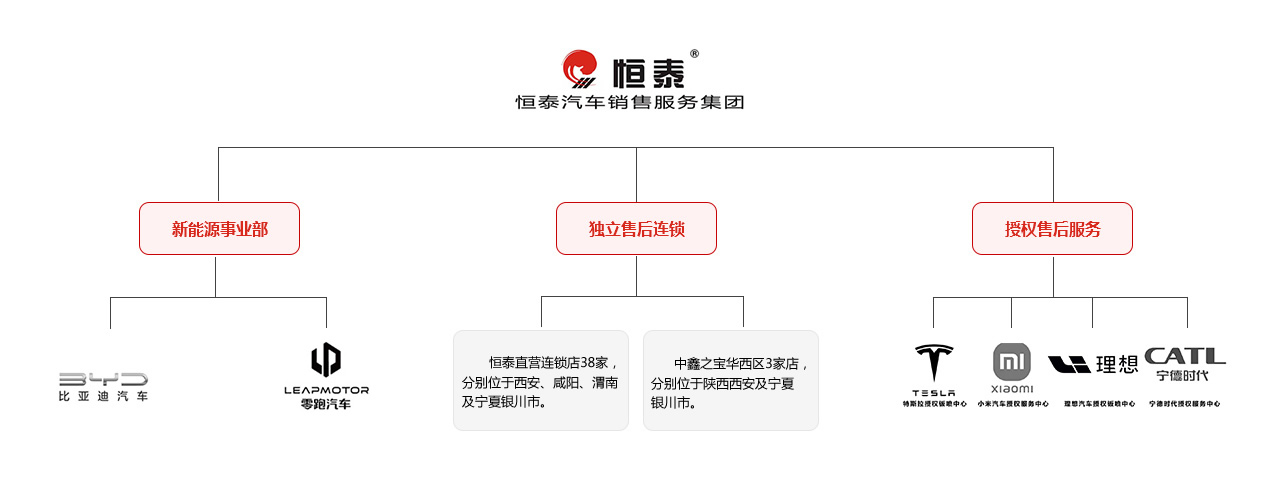 恒泰發展至今已成為集新能源汽車銷售、汽車品牌授權服務及獨立售后連鎖服務的綜合性汽車銷售服務集團。